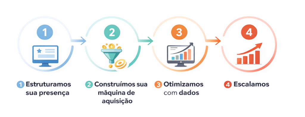 Estruturamos sua presença digital, criamos uma máquina previsível de aquisição e usamos dados para escalar o seu crescimento com segurança.